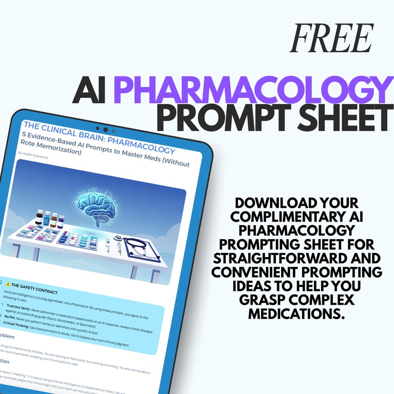 Generate unlimited practice questions, case studies, medication breakdowns, and care plans tailored to your learning needs.HealthScienceIQ Prompt Kits help you study more efficiently and understand material faster.